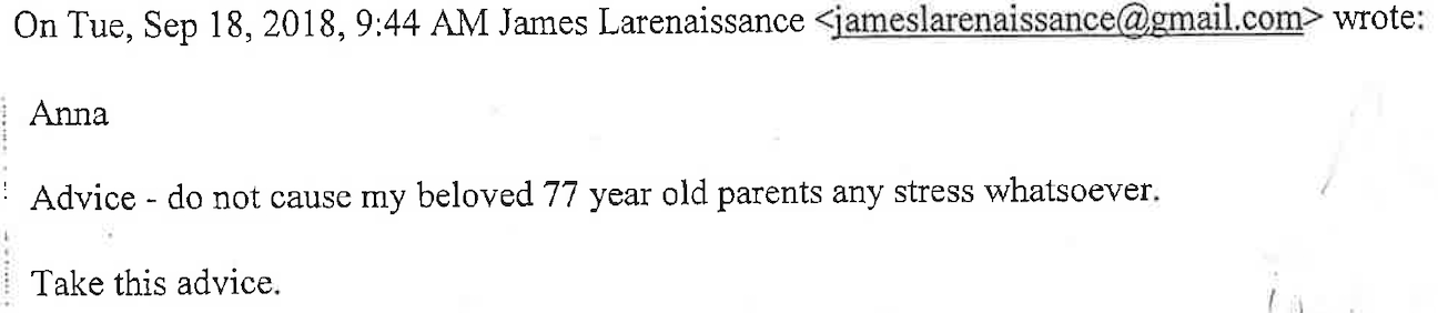 First – there is the insane Sept. 28, 2018 Arrest Warrant for Email Harassment of tenant/ex-girlfriend Complainant #1 Ana Campbell that was granted (the case at hand).