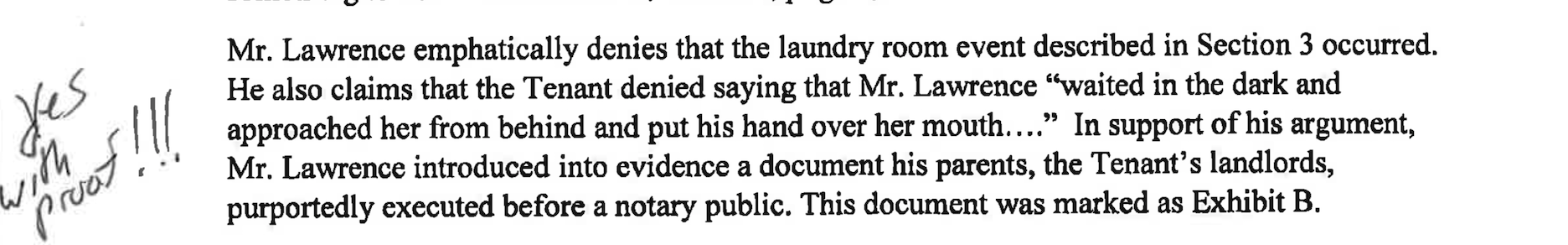 both descriptions are not consistent and show how Ana Campbell took liberty and committed a very very serious crime of perjury writing that I “waited in the basement for Marie Pelletier, snuck up behind her and put my hand over her mouth and said something”.